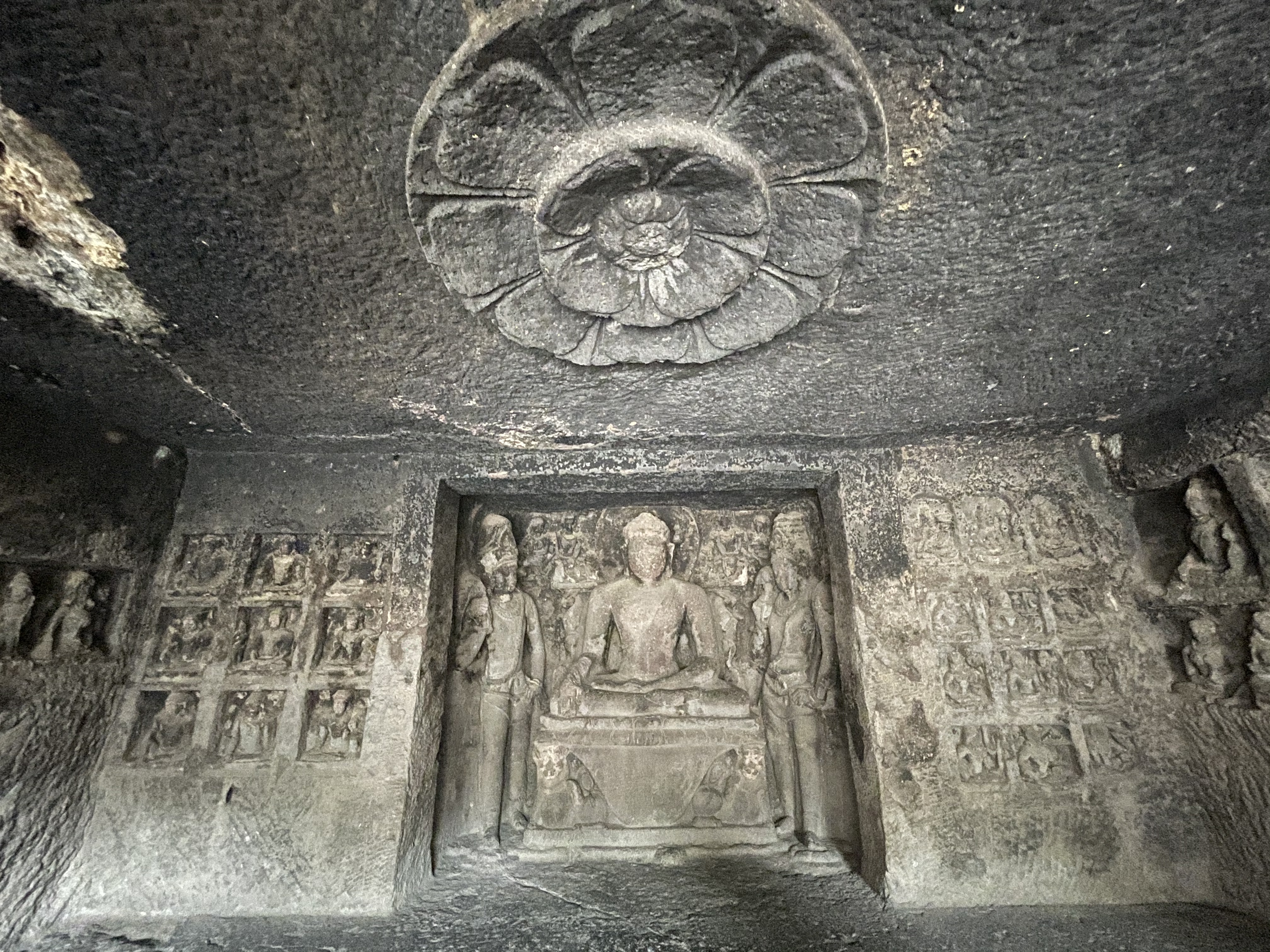Seated_Buddha_with_attendants___Buddhism_at_Ellora_.jpg Public