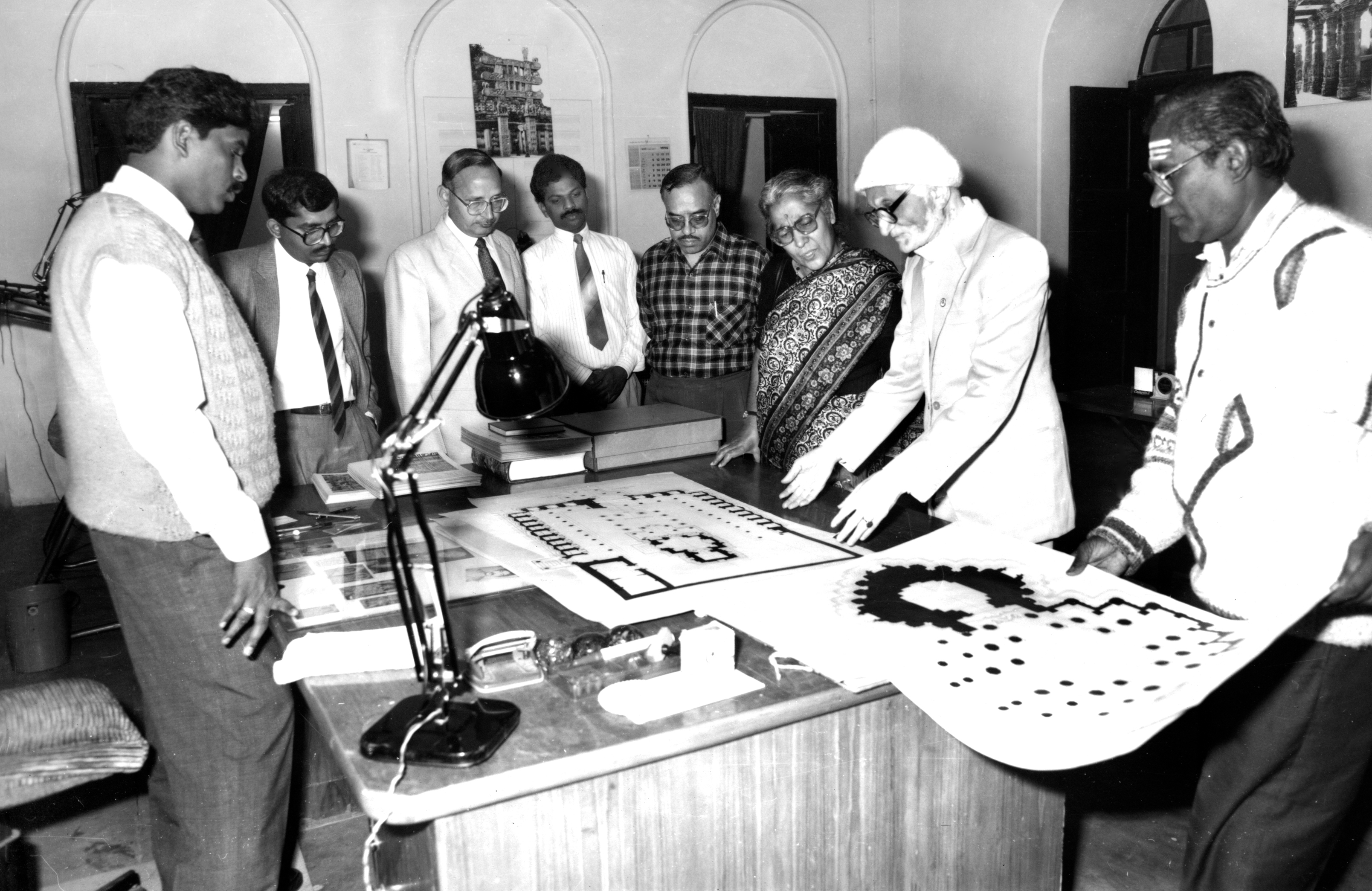 14._M_A_Dhaky_explaining_the_architectural_documentation_work_done_by_the_AIIS__Center_for_Art_and_Archaeology_s_draftsmen_to_a_group_of_visiting_scholars.jpg Öffentlichkeit