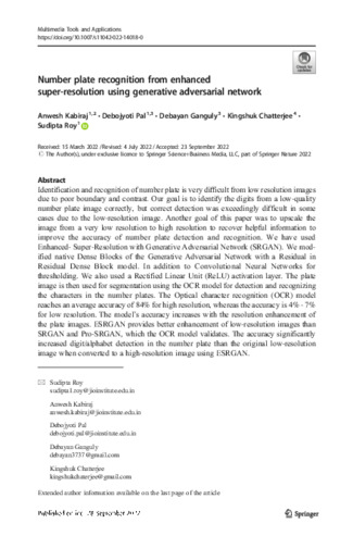 Number plate recognition from enhanced super-resolution using generative adversarial network Public Deposited
