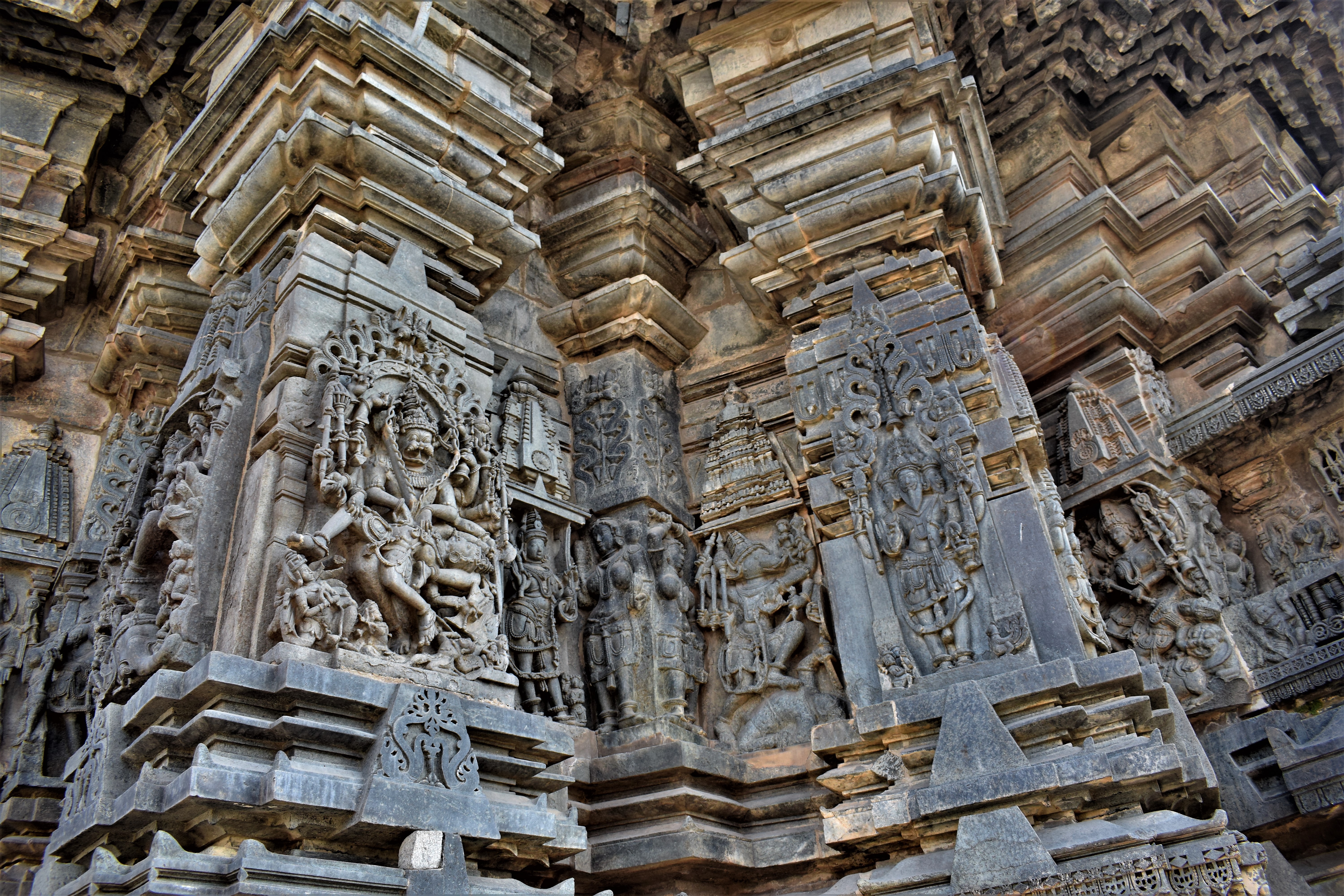 Chennakeshava temple, Beluru, wall reliefs around the sanctum, southern side, SW pillars, Brahma, Narasimha, Varaha Público Deposited