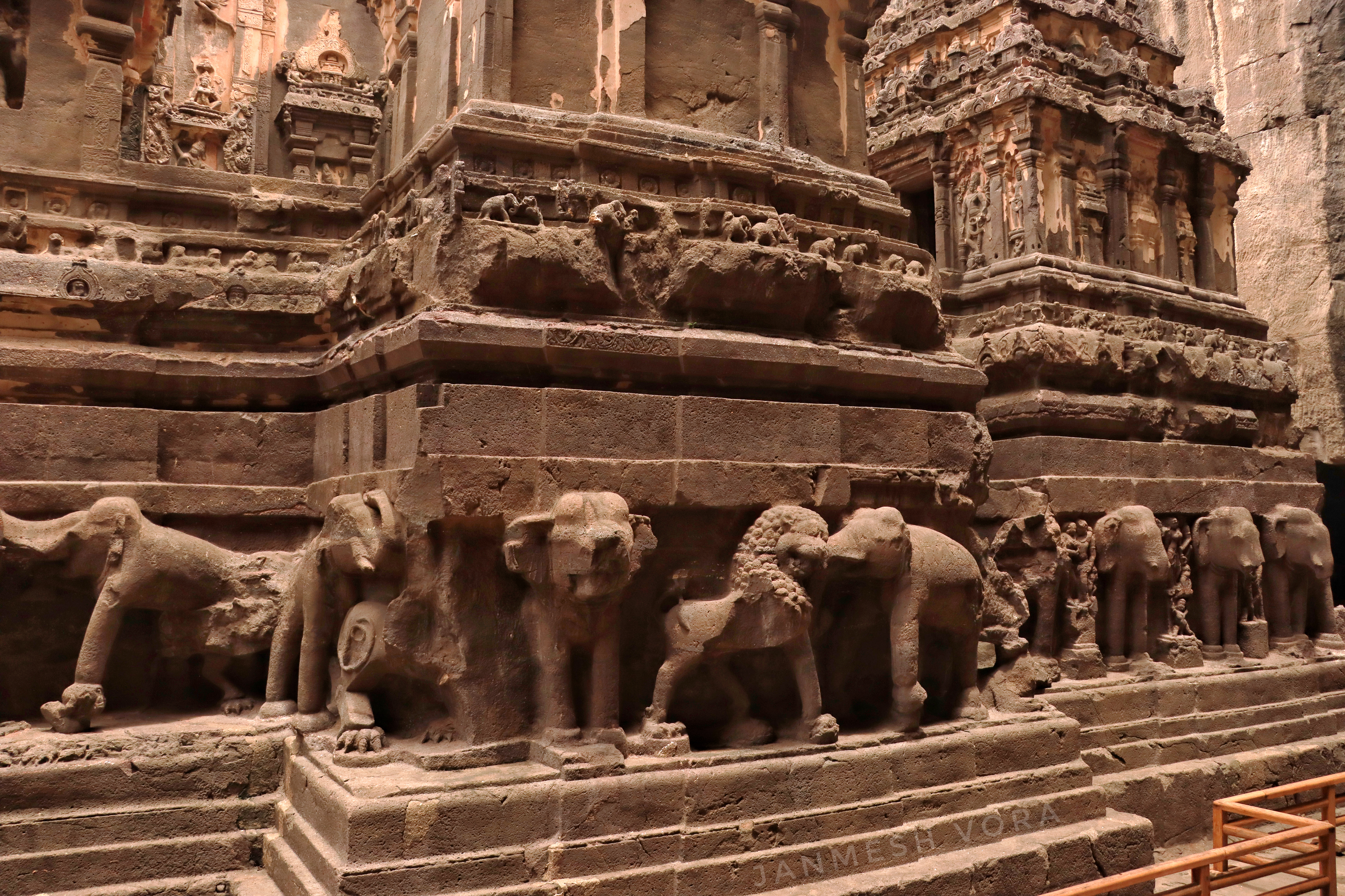 Ellora, Lion and Elephant imagery on the base of Kailasanath temple Öffentlichkeit Deposited