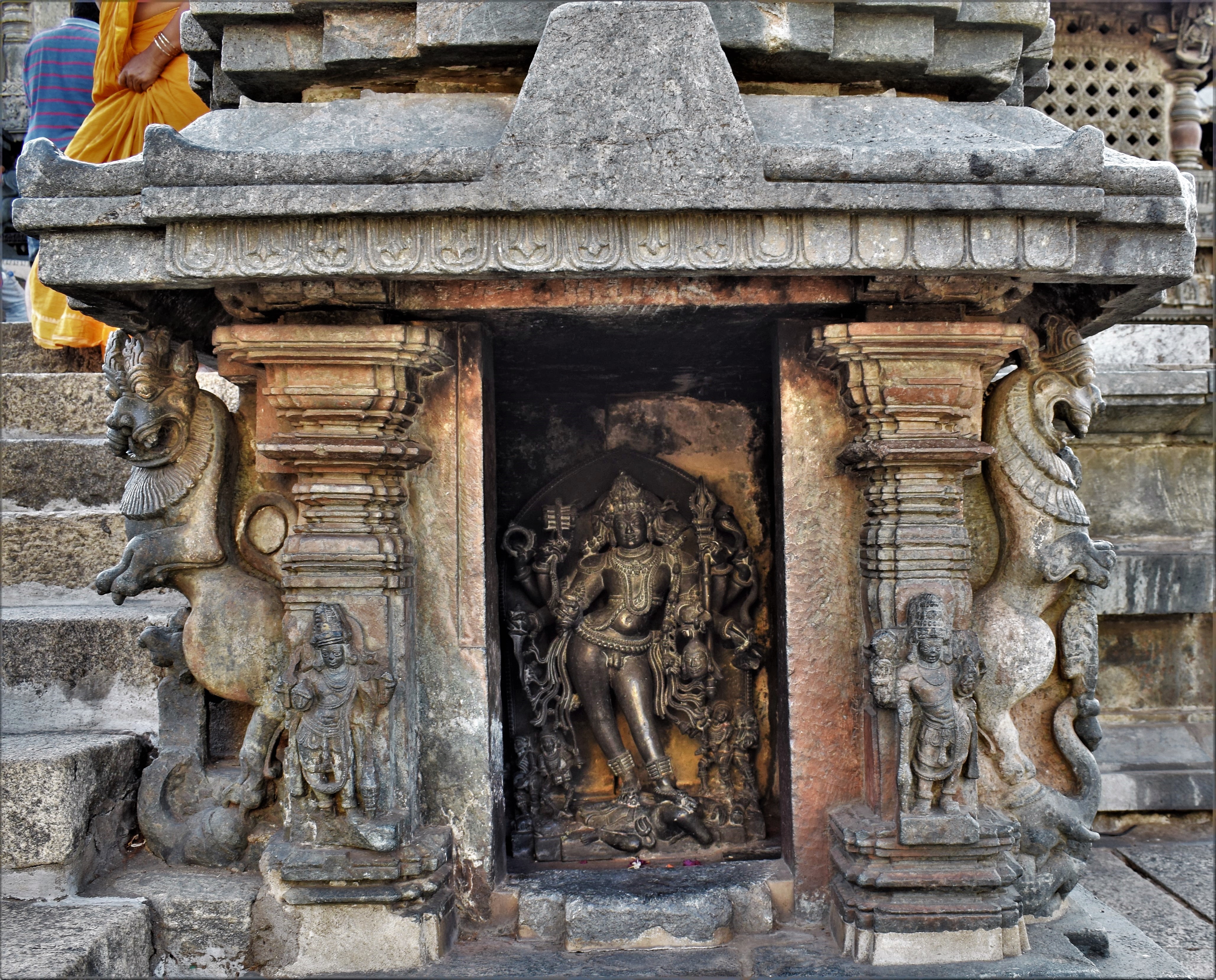 Chennakeshava temple, Beluru, Idol of Bhairava inside the mini shrine at the main entrance