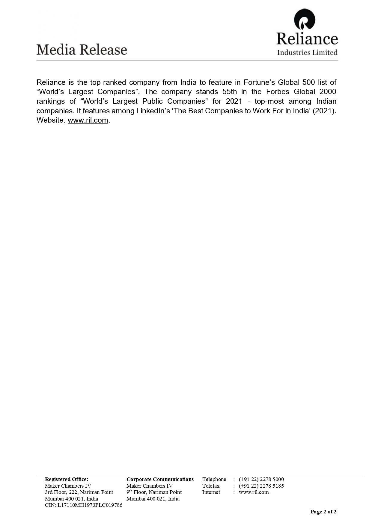 Mukesh Ambani announces target of making Reliance net-zero carbon by 2035. Image Courtesy: Reliance Industries Limited.