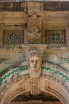 The ground floor arches have terracotta keystones with faces that are allegorical depictions of the hours of the day, representing morning, evening, noon, and night, each facing a cardinal direction.