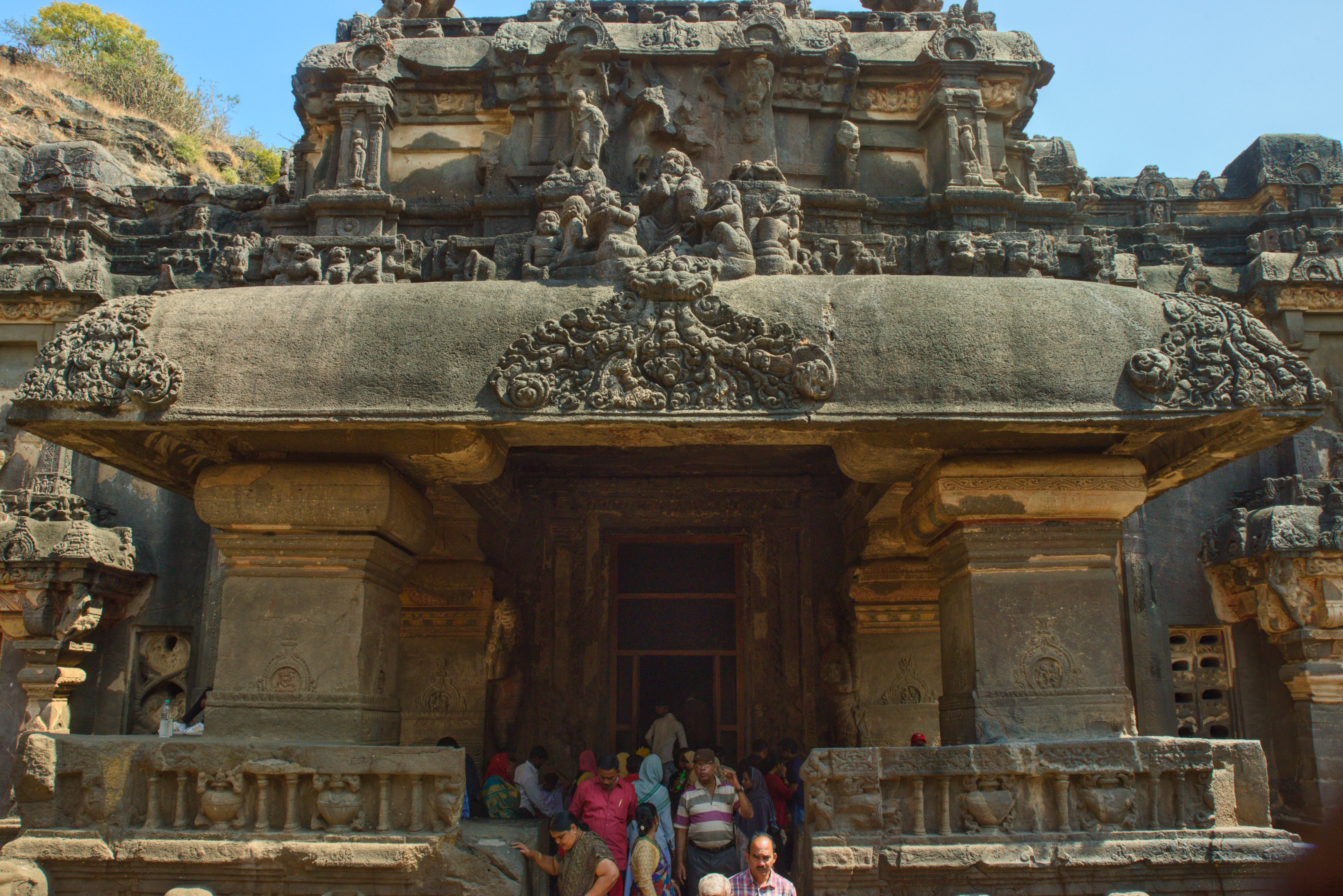 Ellora, Kailasanath Temple, Sculptures and other exquisite designs on the Mandapa Öffentlichkeit Deposited