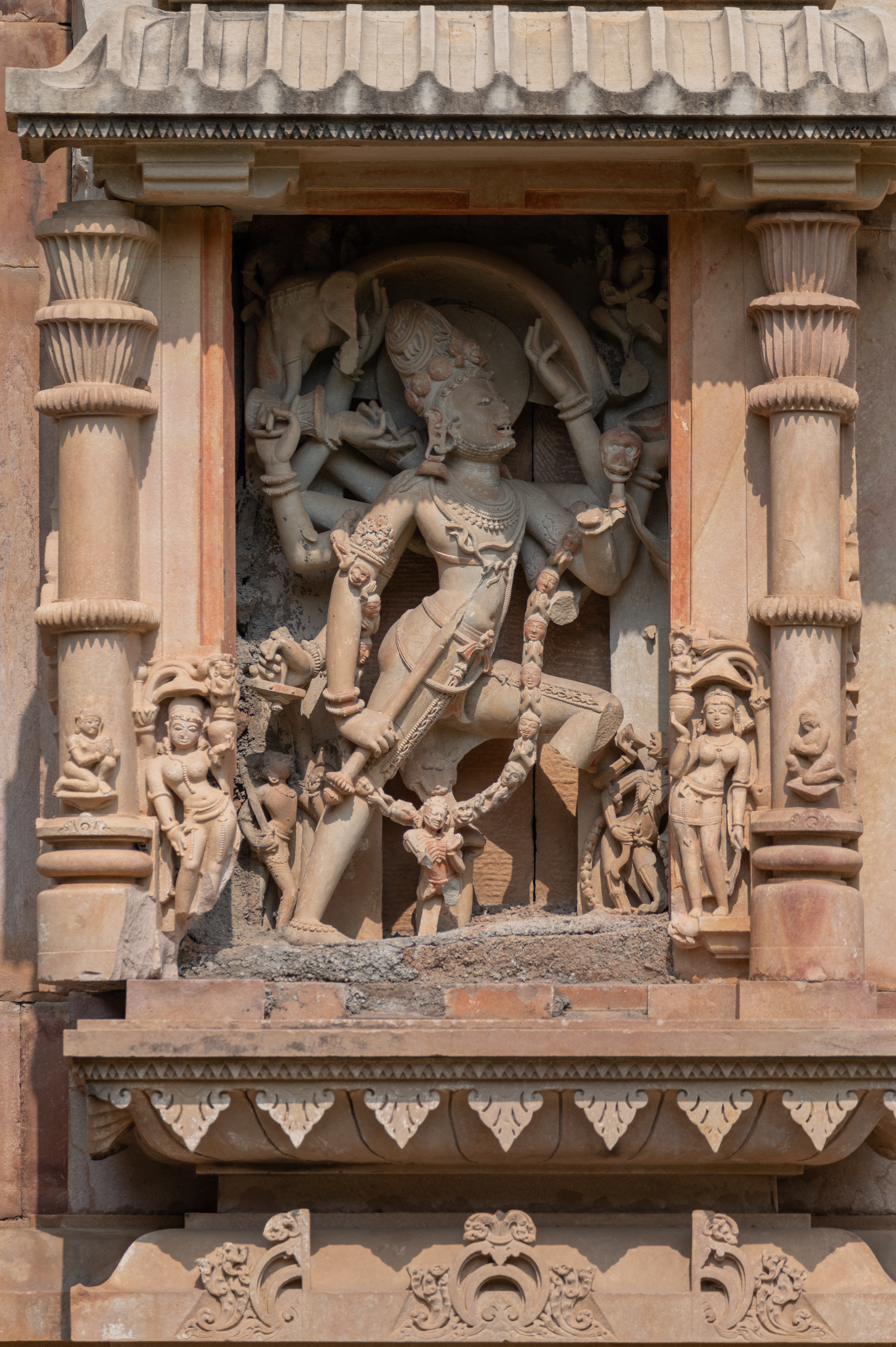 Depiction of the Andhakasuravadha form of Shiva in the southern bhadraratha (central projection), Ghateshwar Temple.