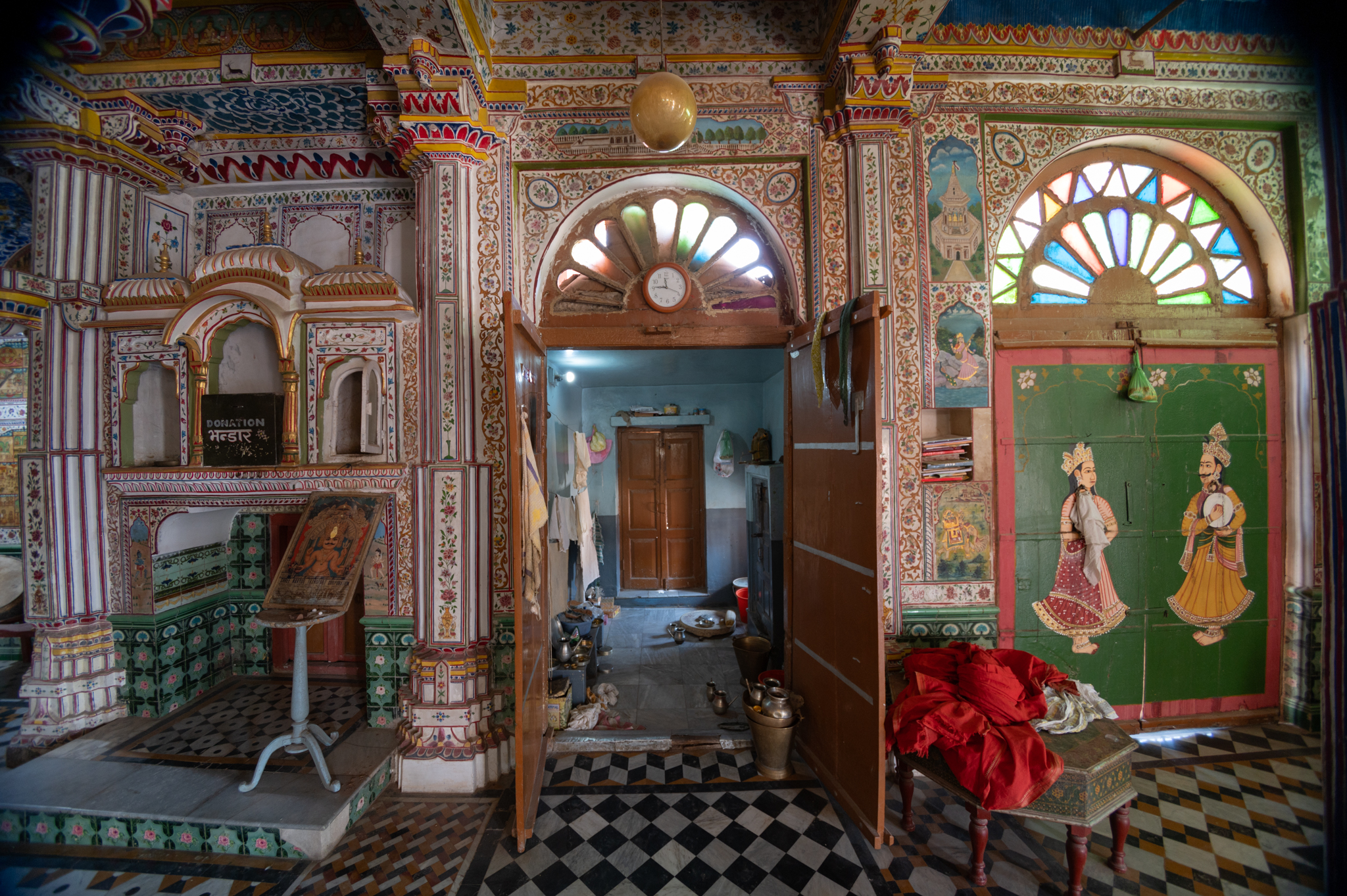 The northern side of the mandapa (pillared hall) of the Bhandasar Temple has two lateral transepts instead of the doorways on the south side. One of these is used as the priest’s room. Another one has a miniature shrine added to it. Since the Bhandasar Temple has been renovated several times, the interior spaces have undergone significant changes. Upto the level of the antarala (antechamber), the temple portions are of the earlier period, however, the mandapa (pillared hall) has undergone timely reconstructions. The intermediate projection of the temple has icons of celestial damsels and the corner projections have ashtadikpalas (eight cardinal deities).