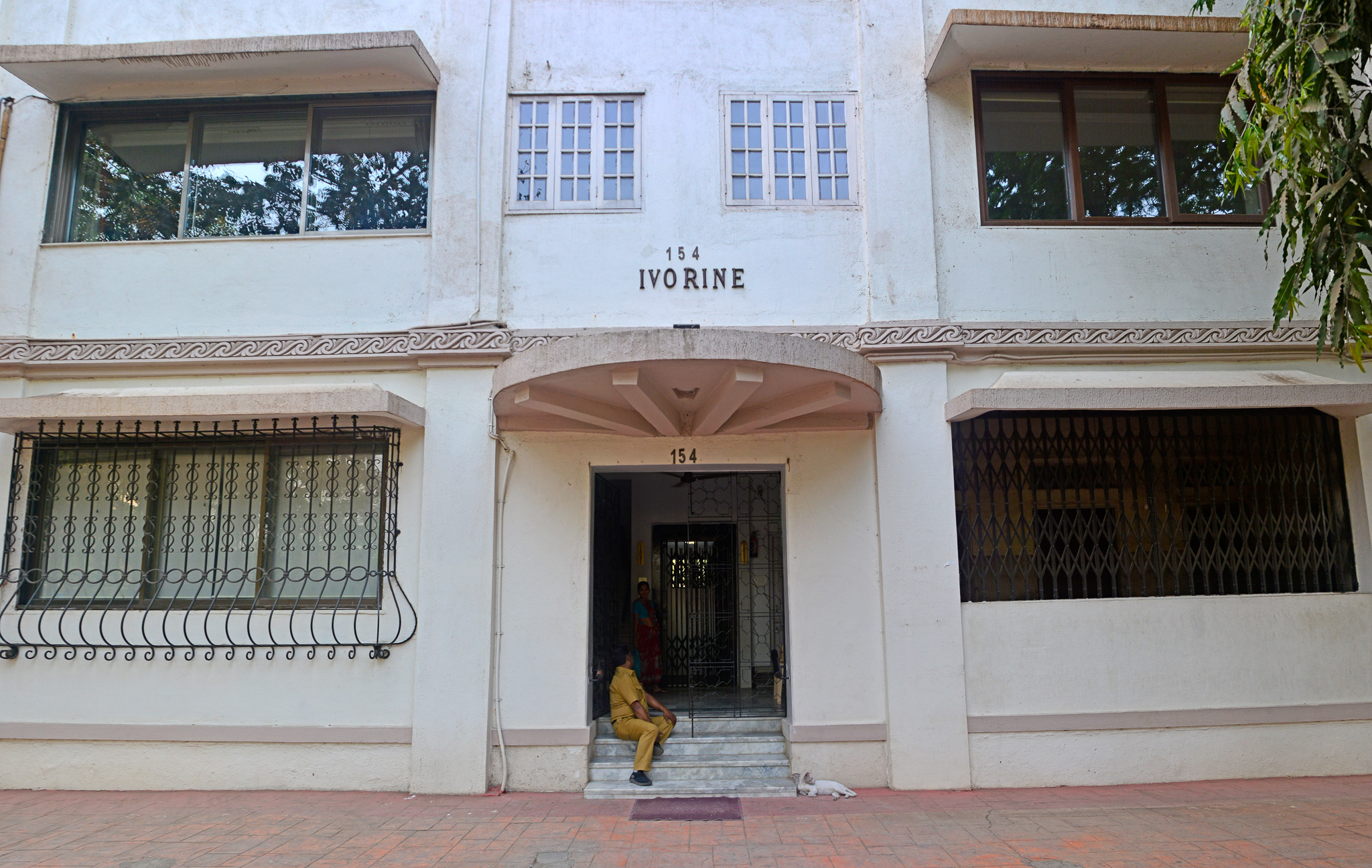 Detail of entrance porch with sunburst beamed canopy and a wave motif band, Ivorine.