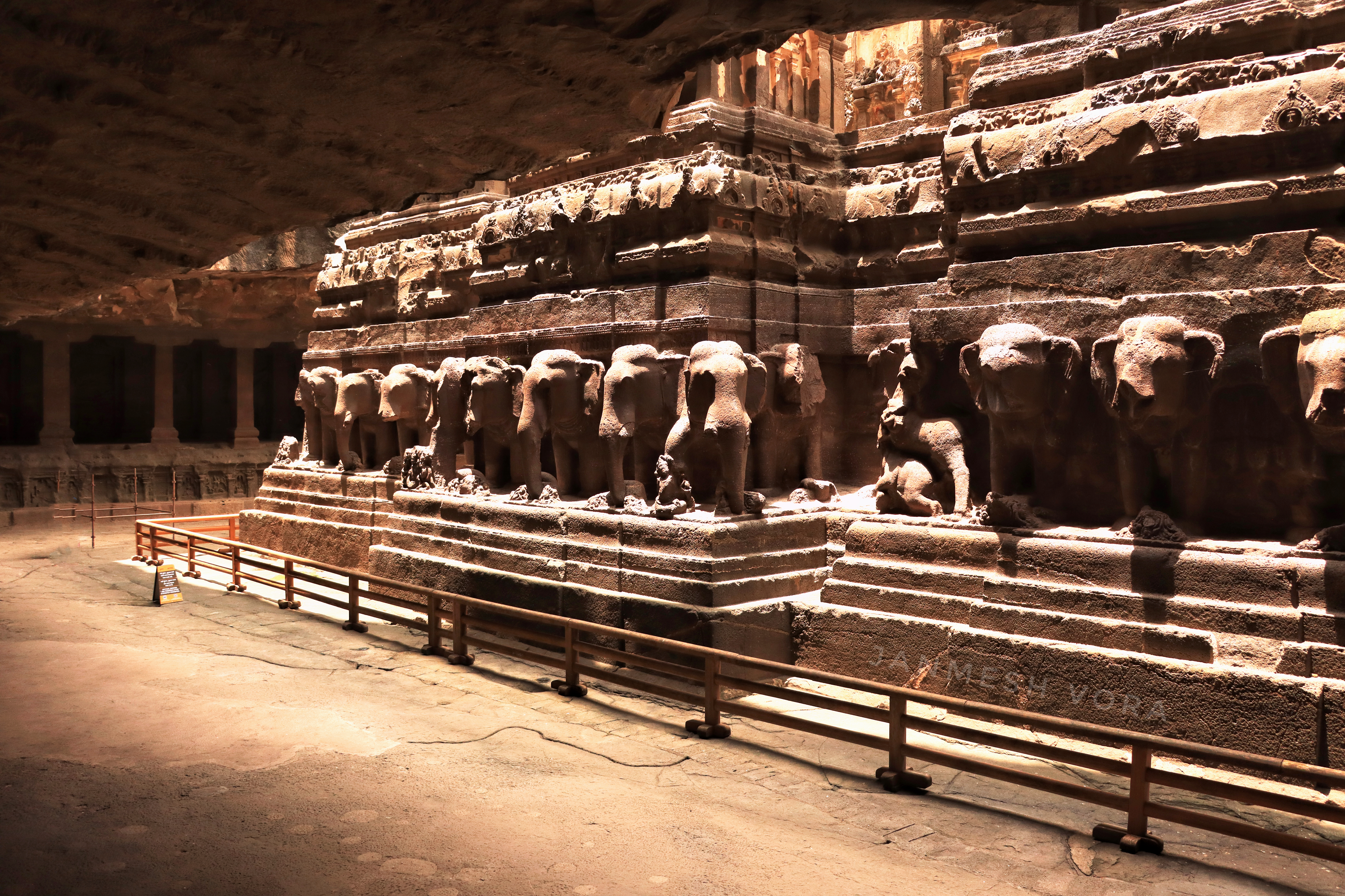 Ellora, Elephant carvings at Kailasanath temple Public Deposited