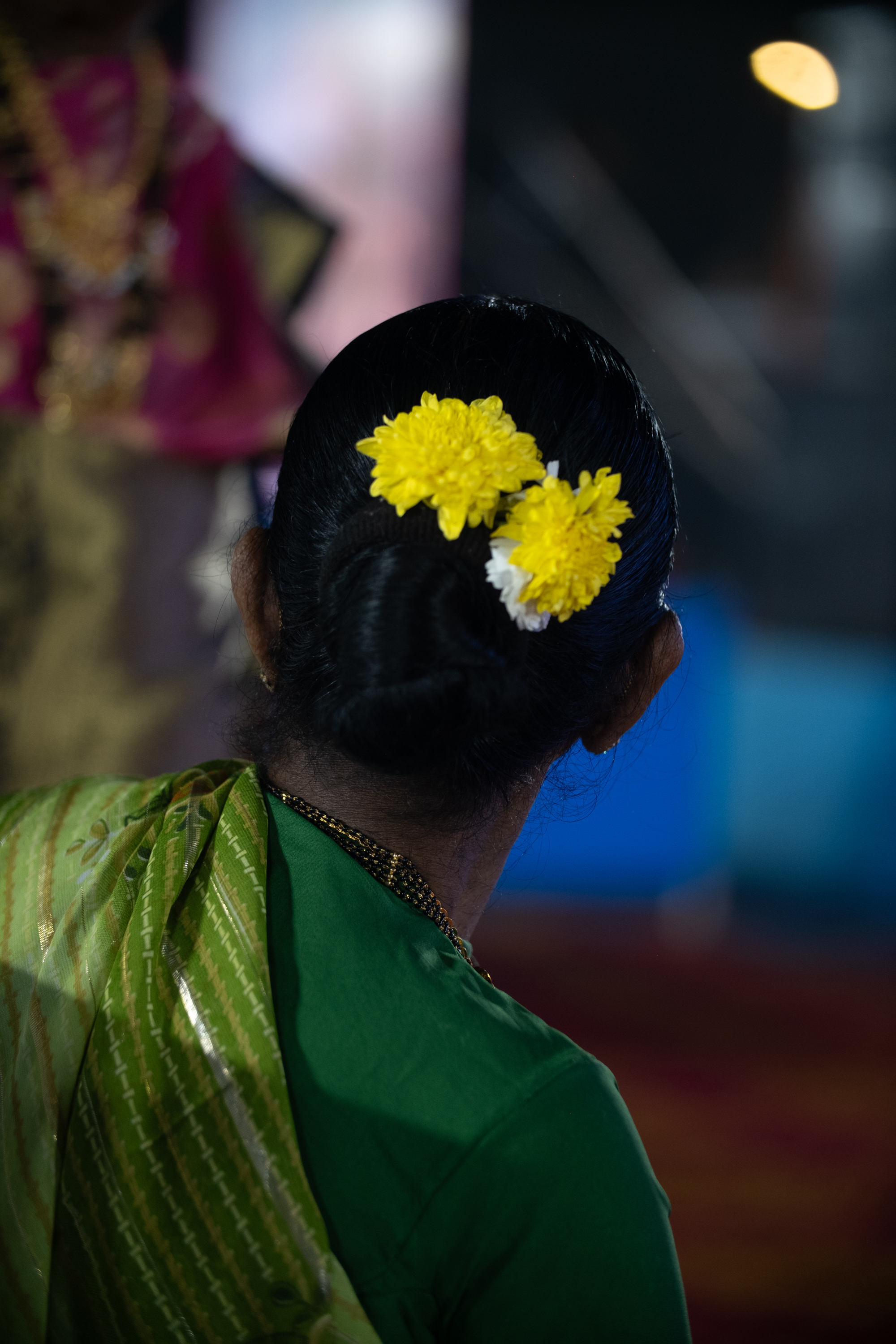 The khopa (classic bun) is one of the most traditional hairstyles for Koli women. It involves gathering the hair at the back of the head and twisting it into a neat bun. As is customary in the region, they adorn their hair buns with scented and colourful flowers.