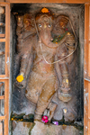 To the left of the mukhamandapa (front porch) of the Mahakal Temple, one can observe a standing statue of Ganesha. This depiction shows him with four arms, carrying a kamandalu (water pot), akshmala (rosary), another object and a bowl filled with modaks (a form of sweet with stuffing).