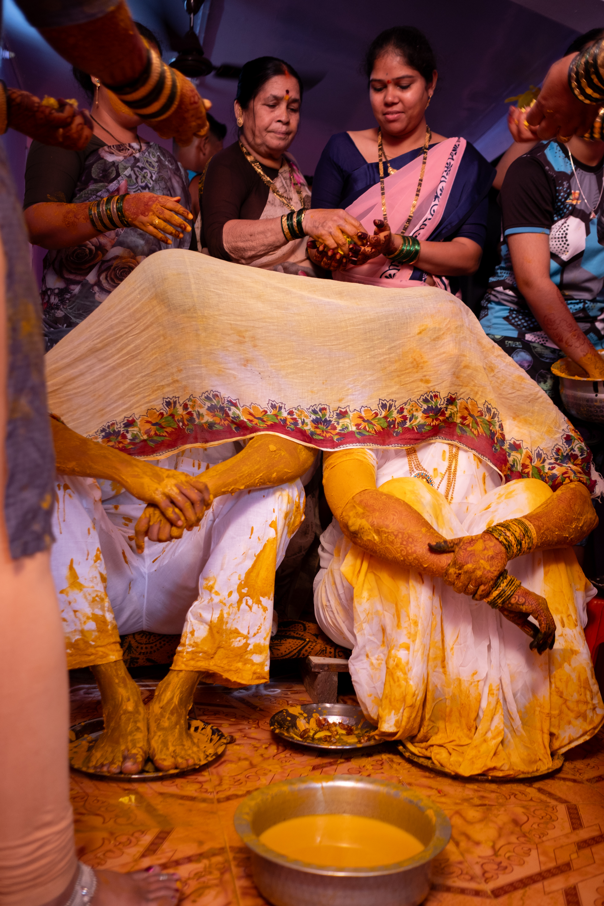 In Hindu culture, turmeric is considered auspicious and is believed to have purifying properties. Applying turmeric paste to the bride's skin is believed to cleanse her body of impurities, preparing her for the sacred union of marriage.