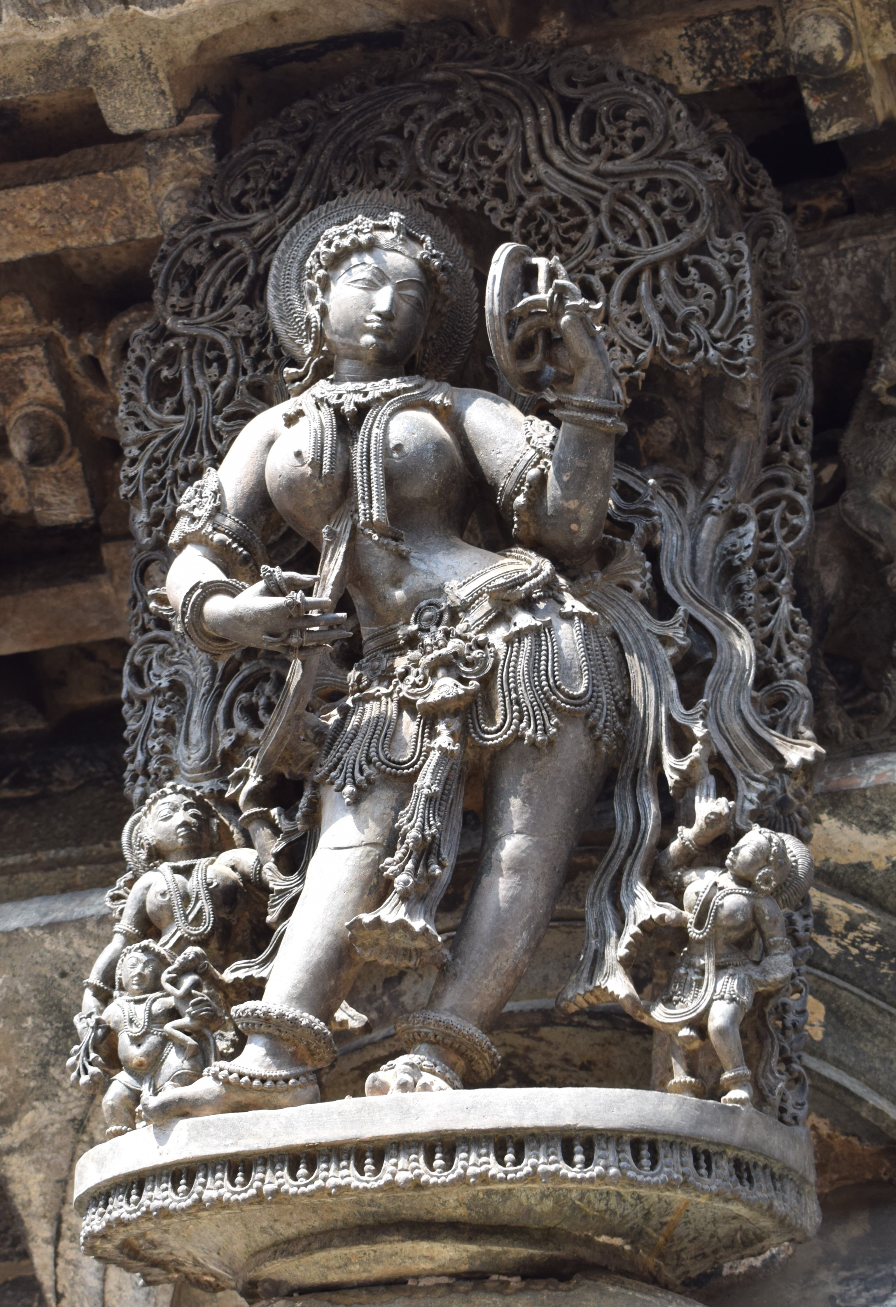 Chennakeshava temple, Beluru, bracket figure, shilabalike - Darpana sundari - girl with a mirror-2 Public Deposited