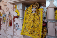 Image in the principal niche on the south-facing wall of the Suswani Mata Temple wall is covered in drapery but based on the visible portions. It appears to be Mahishasurmardini mounted on a lion. Left upper hands of the deity are holding a shield and sword. Near the left leg is the mount Lion of the goddess.