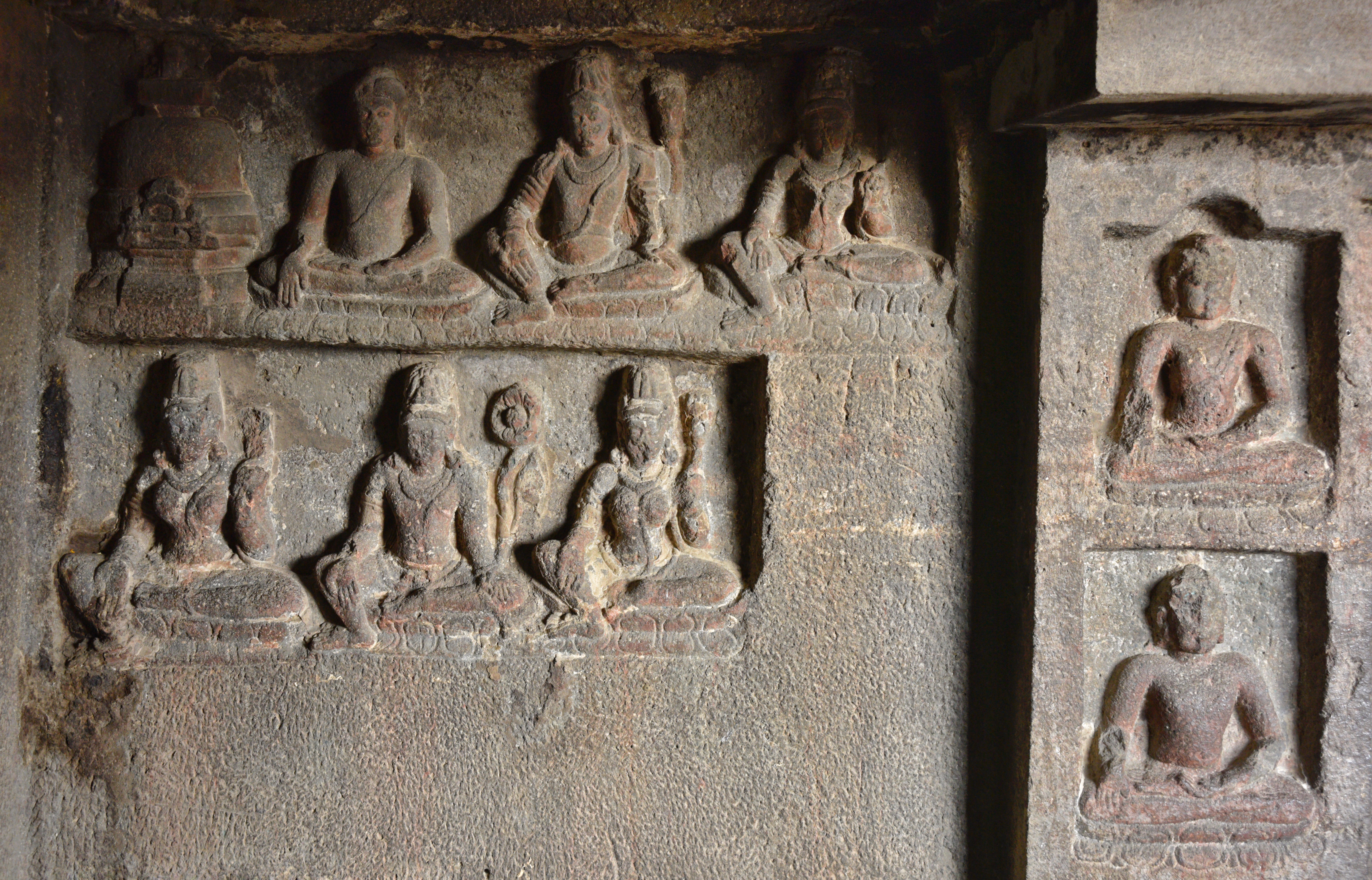Ellora, Buddhist Architecture, Buddha in Bhumisparsh mudra with Stupa and other divine figures Public Deposited