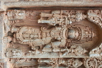 Image courtesy : Saurabh Saxena - https://puratattva.in/ Vishnu is holding Shankha and Chakra in the upper two hands. Lower right hand has a mace and the left hand is empty.