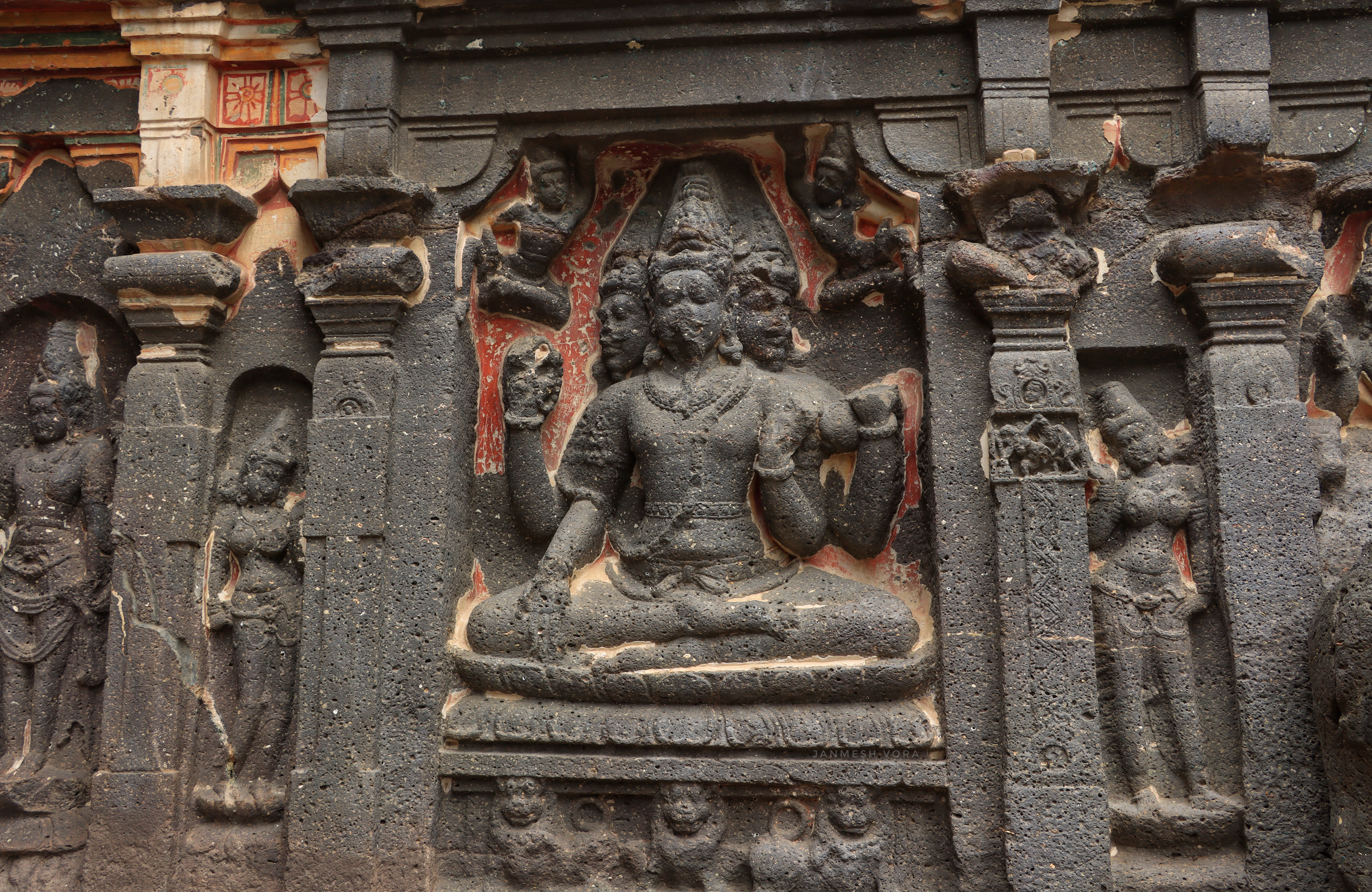Ellora, Lord Brahma, Vishnu and Mahesh Sculpture at Kailasanath Temple