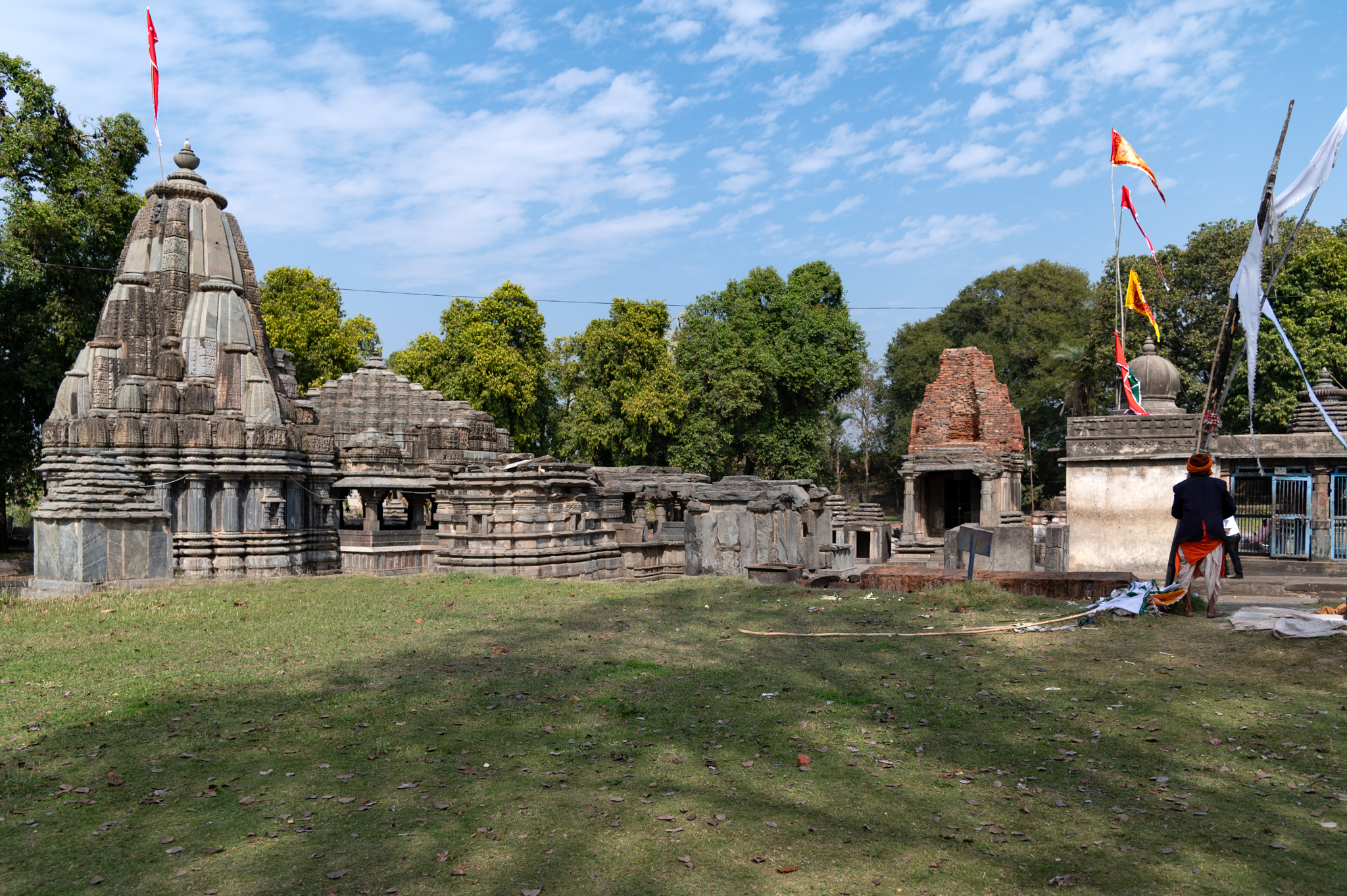 The Hanuman Garhi temple complex is the largest complex among the structures at Arthuna. It consists of two main temples: the Neelkanth Mahadev and the Hanuman temples. Both are living shrines, along with over a dozen of smaller temples. There are also memorial stones and small shrines in this complex. The complex originally had an entrance from the eastern side. Neelkanth Mahadev temple has a shekhari (multi-spire) style shikhara (superstructure) and Shiva temple with Phamsana (stepped pyramidical) shikhara has sculptures on its walls.