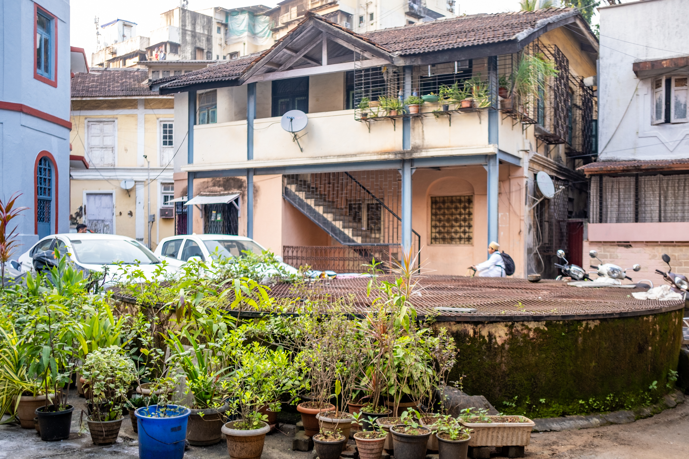 Despite its proximity to the sea, Mazagaon had an abundant freshwater supply. Wells were the only sources of drinking water before tap water was made available inside homes. This is the central well of Matharpacady, located in a circle known as Brahmin Chawl. This was the only source of fresh water in the past but is no longer used and remains covered up. Other than this public well, there were also private wells inside houses.