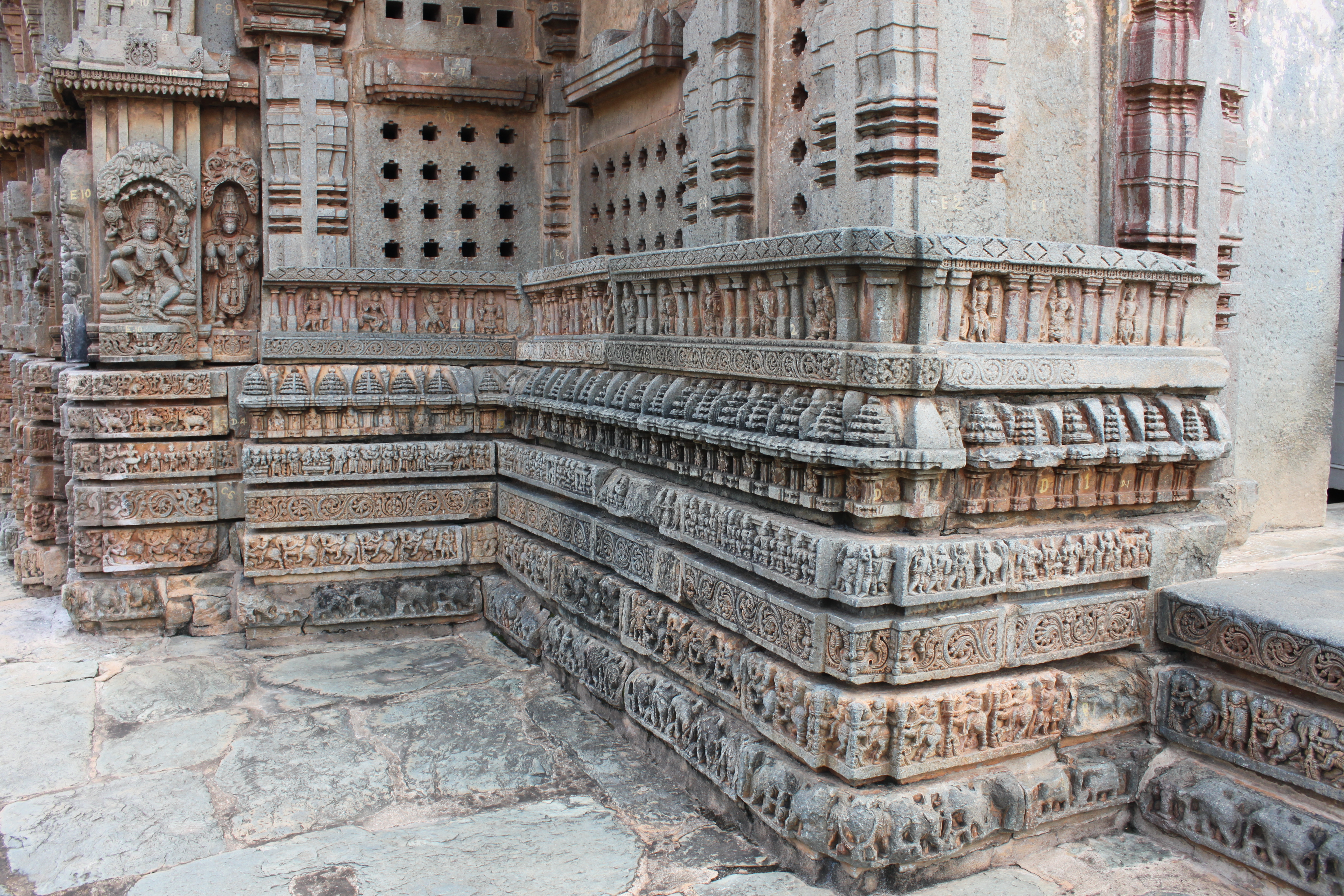 Image courtesy : Saurabh Saxena - https://puratattva.in/ The horizontal bands of elephants, horses, creepers are a common feature across all Hoysala temples. The perforacted stone screens can also be seen in most of the Hoysala era temples.