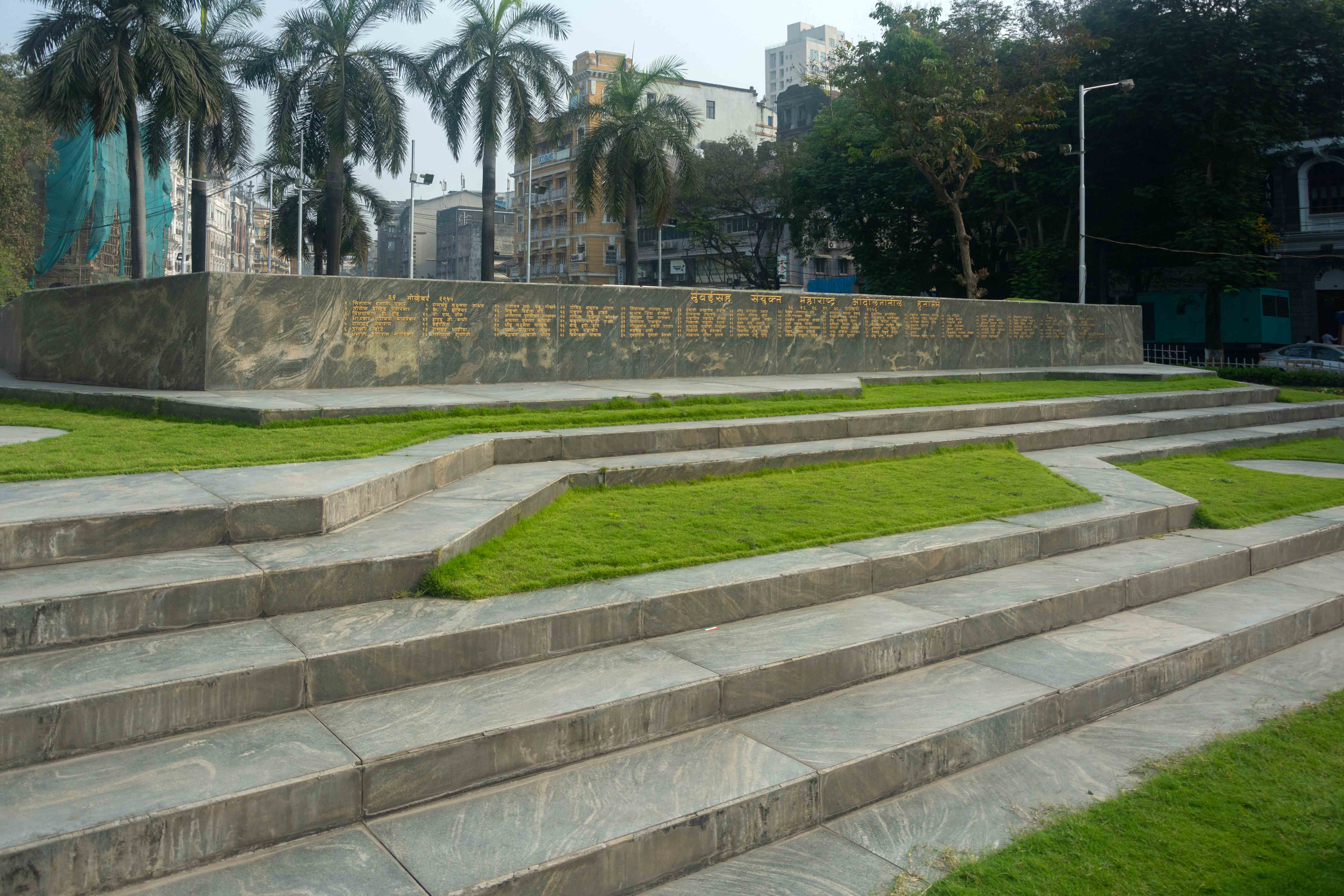 Marble memorial at Hutatma Chowk dedicated to martyrs who laid down their lives on 21 November 1955, when demonstrators at Flora Fountain were fired upon by security forces during the period of agitation for Samyukta Maharashtra Movement (Movement for United Maharashtra).
