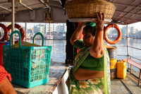 The Versova-Madh ferry service is used by a wide range of commuters, some even plying two-wheelers stacked on the flat decks. Daily commuters include students going to school, daily wage labourers, working professionals, and fisherwomen with their daily catch headed for the markets.