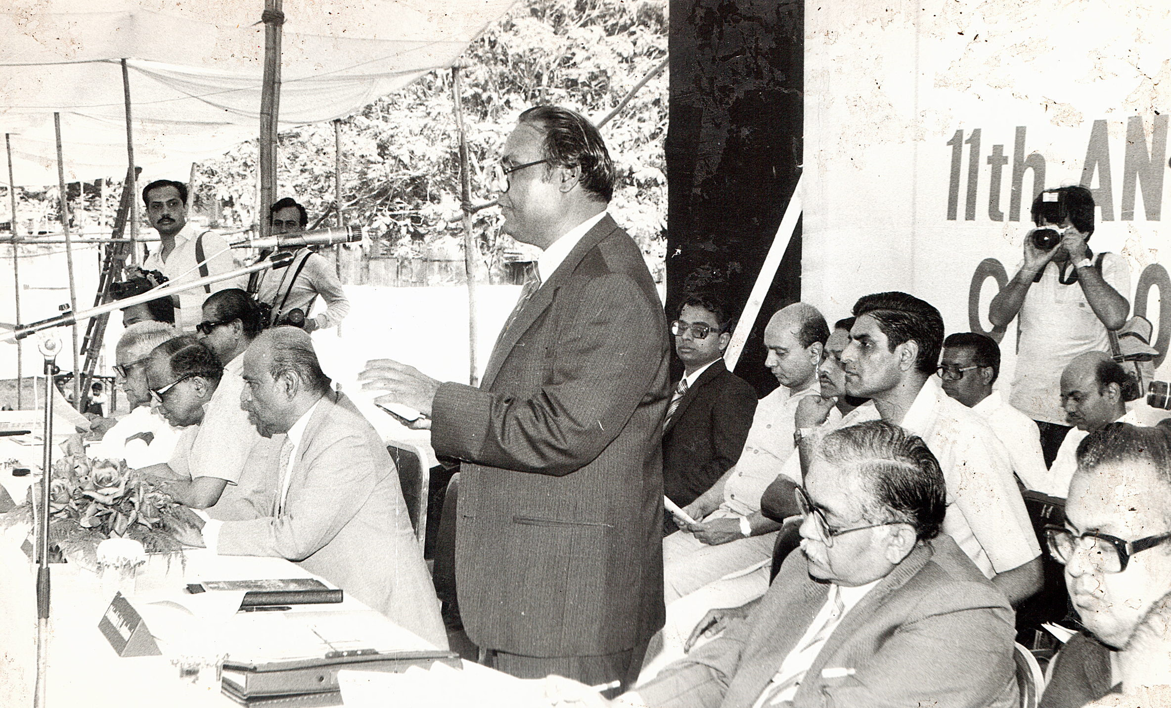 Shri Dhirubhai Ambani booked the Cooperage Football Ground in Colaba to host a mega-AGM event. It was reported in Financial Times as ‘the world’s largest company AGM’ attended by 12,000 Reliance shareholders. 'My investors are my biggest bankers,' Shri Dhirubhai Ambani said, acknowledging the massive crowd. Image Courtesy: Reliance Industries Limited.