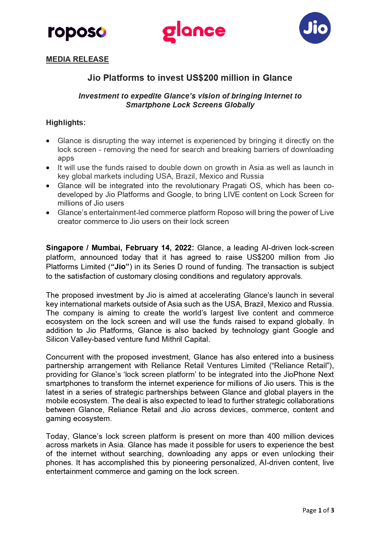 Jio_Platforms_to_invest_US200_million_in_Glance_page-0002.jpg | 17-08-2022 | Public |