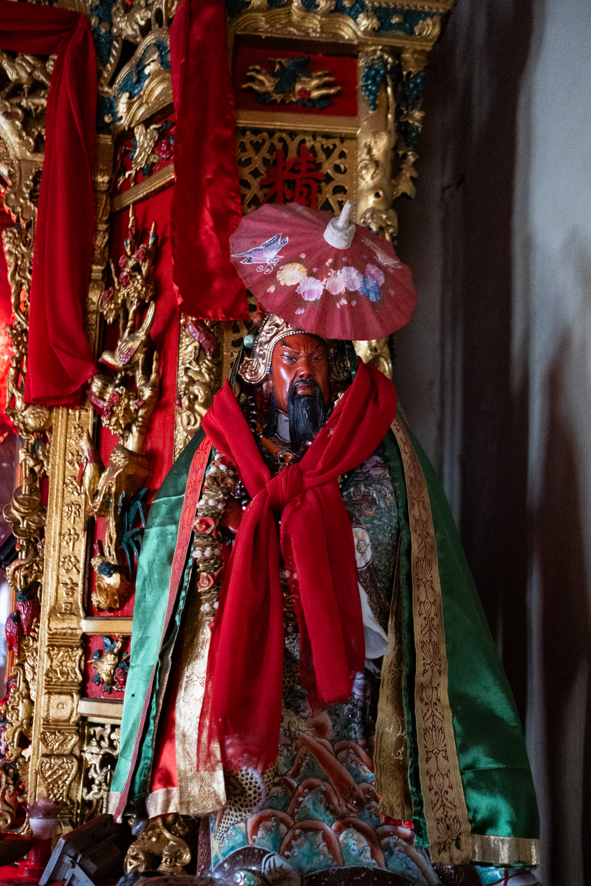 The shrine on the first floor is dedicated to Kwan Kung. He is venerated as a God of war, righteousness, and loyalty in various Chinese religious traditions, including Confucianism, Taoism, and Chinese folk religion. Revered for his martial valour and ability to protect against evil spirits, Kwan Kung is typically depicted with a red face, a long beard, and wearing traditional Chinese armour.
