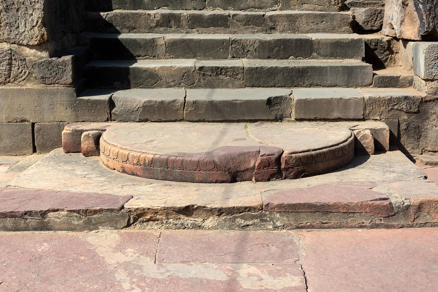 A chandrashila (moonstone) on the steps of the adhisthana 公开