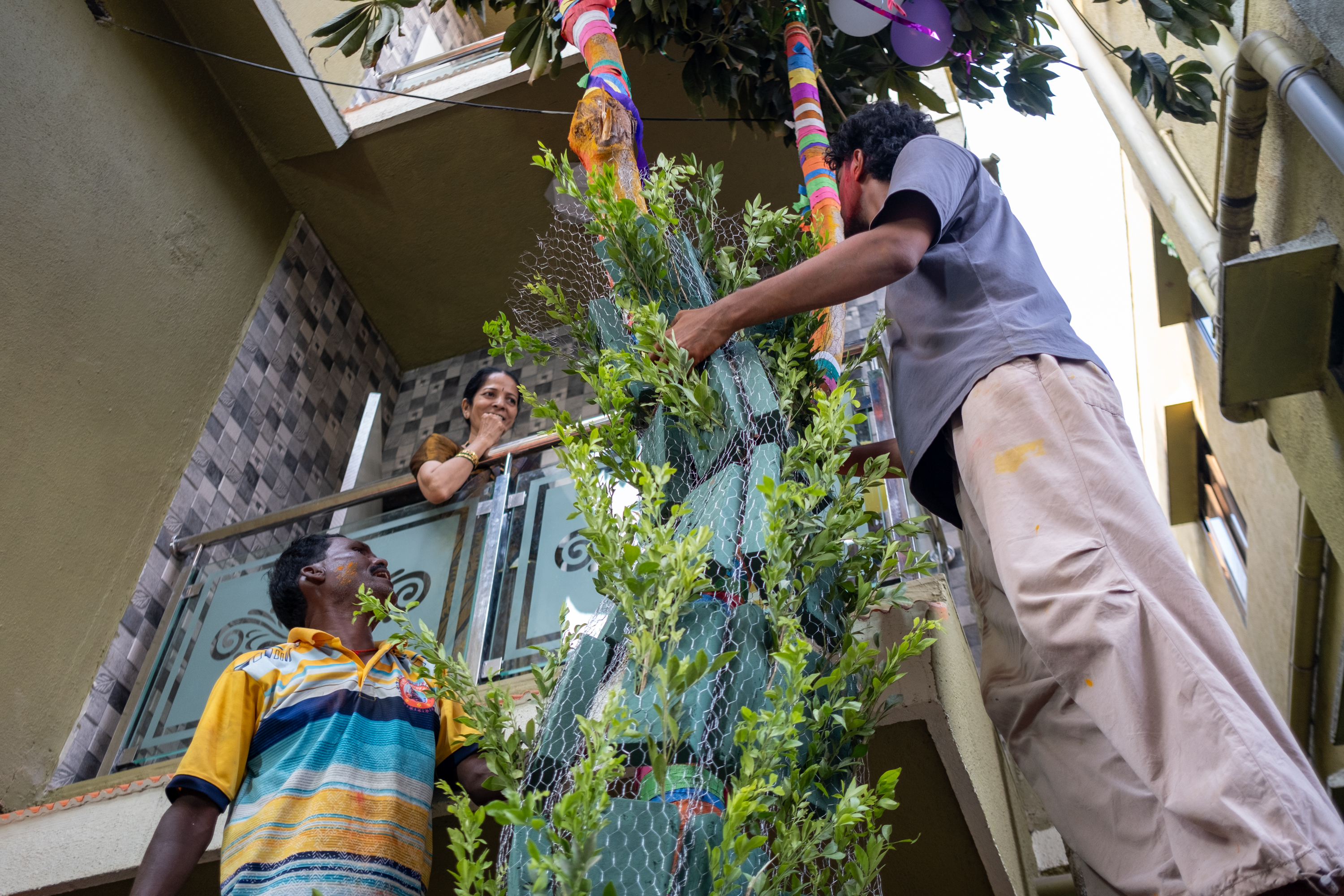 Several effigies are erected in a Koliwada, each decorated in a unique style by the hosting family or committee.