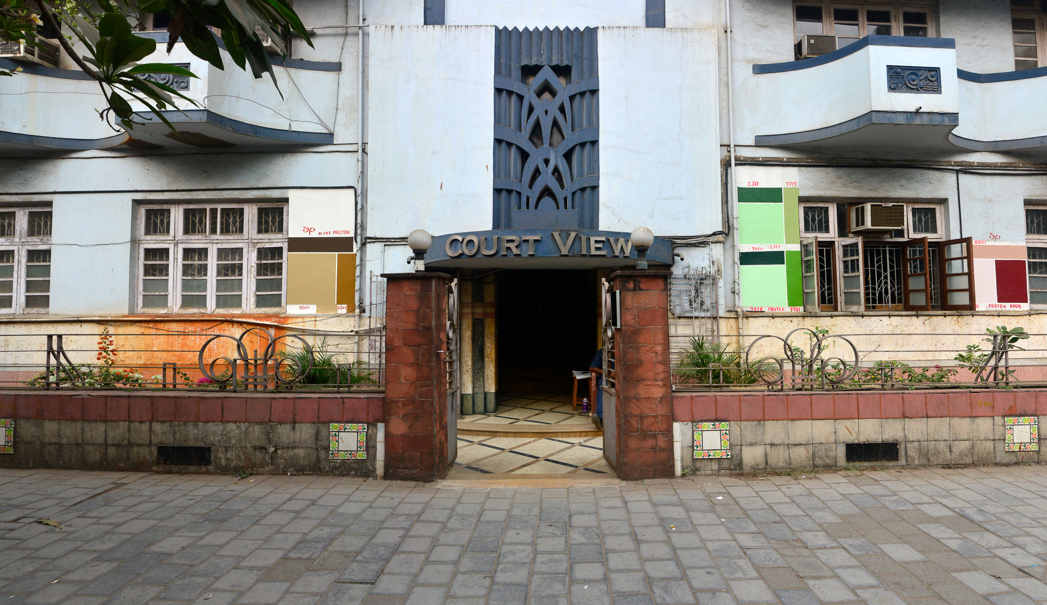 Court View, 126 Maharshi Karve Road, Churchgate. Court View was named after the Bombay High Court which is visible across the Oval Maidan. Architects Maneckji Dalal and Merwanji Bana & Co. designed Court View with additional designs by Gajanan Babu Mhatre, who was brought on as a consultant at the later stages.