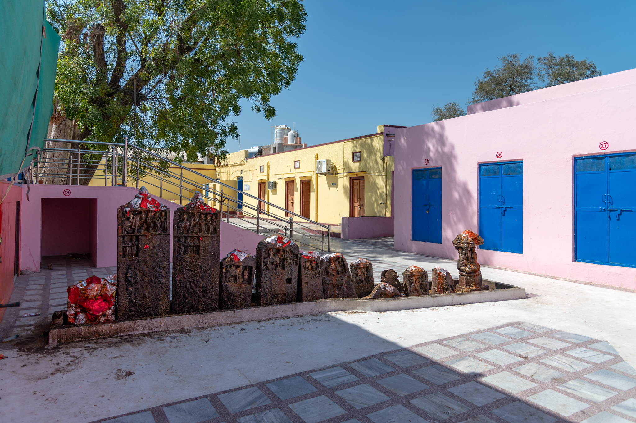 A dozen architectural fragments, mainly consisting of hero stones (memorial stones), along with some pillar and sculptural fragments. The hero stones were installed here after being found scattered in the temple premises and the vicinity of the village. Today these are propitiated as ‘veeron ke pathar’, depicting the journey of the hero (veer), through different panels, in whose memory the steles were installed.